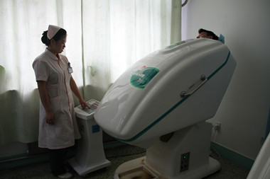 体外药离子渗透又叫中药熏蒸,是以中医理论为指导,通过含有药物的溶液加热雾化作用于皮肤治疗白癜风的疗法。选用天然绿色中药利用皮肤具有吸收,渗透、排泄作用的特性,透过中草药产生的药汽熏蒸患者机体表面,一方面蒸汽中所含的药物有效成分透过皮肤、孔窍、脸穴等部位门按吸收,进入血液循环,高效修复白癜风患者外在皮损;熏蒸时产生的温热效应,可以促进身体各部位的血液及淋巴循环,增强新陈代谢,提高机体免疫功能、祛除血液毒素、铲除白癜风致病源,以达到康复的目的。